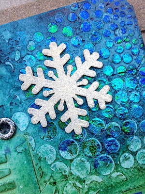 Today I want to share with you a canvas that I sparkled up with hologram embossing powder and Fab Foils to create a frosty, wintery look.